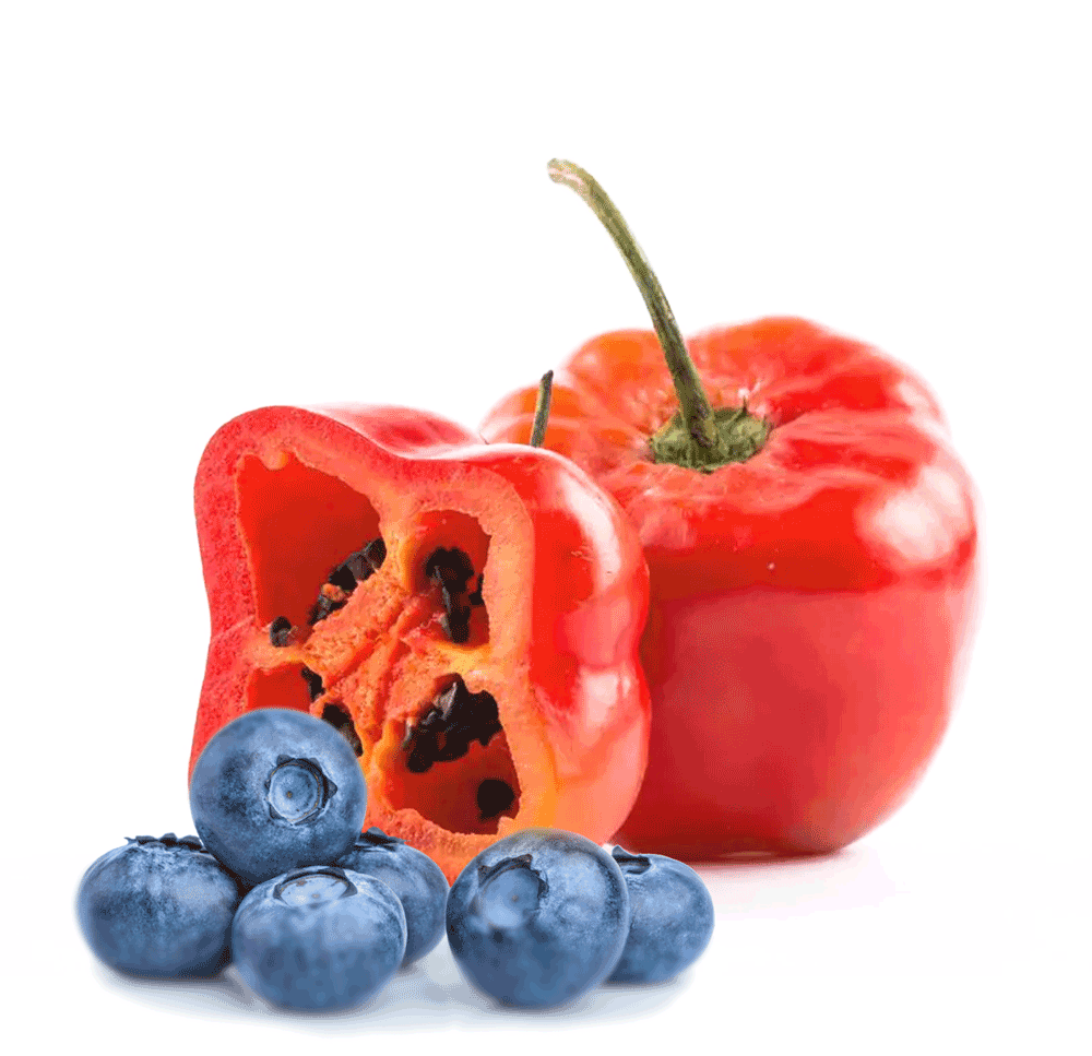 Die Chili Rokoto, aus den majestätischen Anden Südamerikas, bringt eine erdige Schärfe mit sich, die perfekt mit der saftigen Süße der Blaubeere harmoniert. Diese Kombination schafft eine einzigartige Geschmacksnote, bei der die pfeffrigen Untertöne der Chili nahtlos mit den fruchtigen, süßen Nuancen der Blaubeere verschmelzen. Ein ausgewogenes Geschmackserlebnis, das sowohl Schärfe als auch Fruchtigkeit perfekt vereint.
